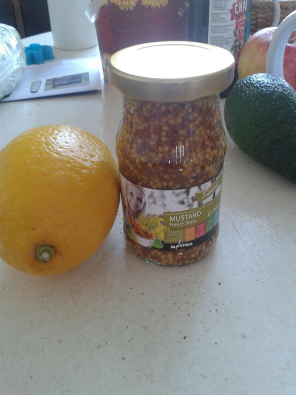 mērcei: Favorit graudu sinepes, medus ,citrons.