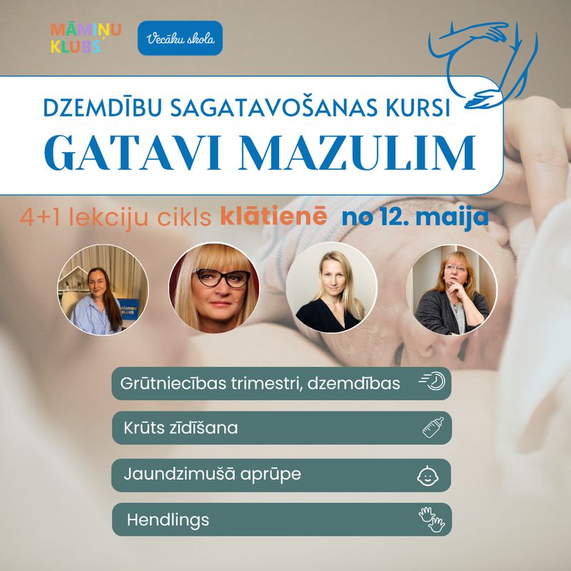 Dzemdību sagatavošanas kursi GATAVI MAZULIM 4+1 lekciju cikls no 12. maija KLĀTIENĒ.Eksperts:
