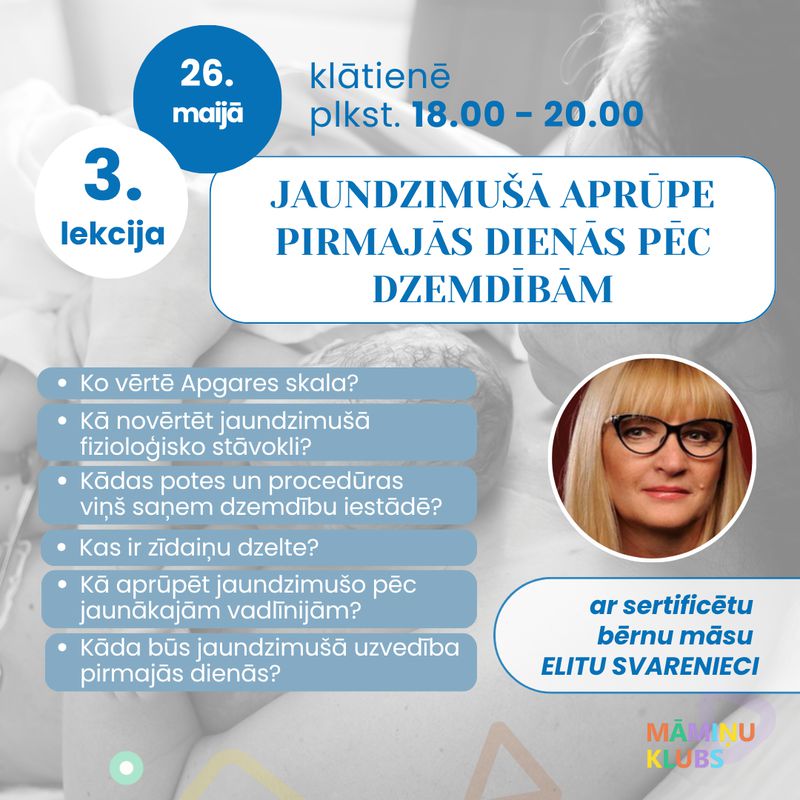 26. MAIJĀ 18.00-20.00 JAUNDZIMUŠĀ APRŪPE MAZUĻA PIRMAJĀS DZĪVES DIENĀS